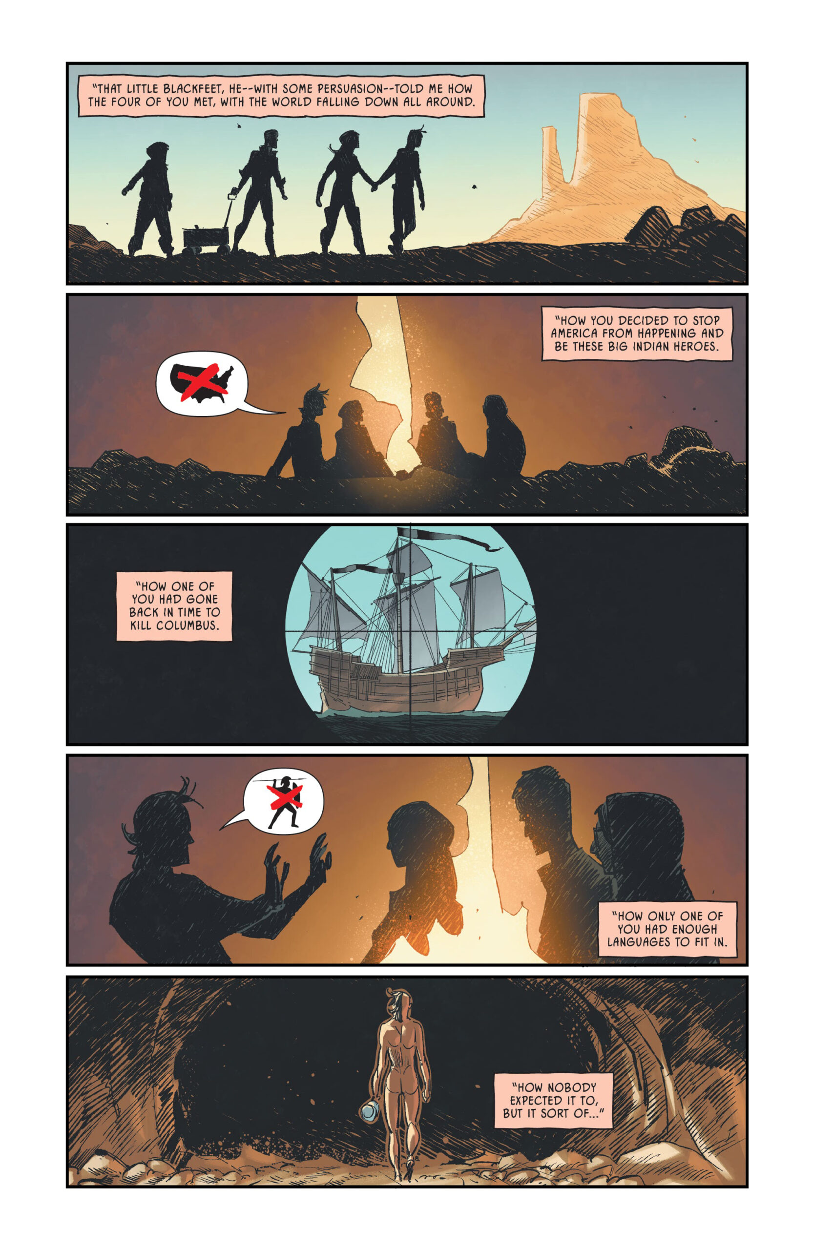 Stephen Graham Jones—New York Times bestselling author of The Only Good Indians and My Heart is a Chainsaw—makes his ongoing comics debut with Earthdivers! The year is 2112, and it’s the apocalypse exactly as expected: rivers receding, oceans rising, civilization crumbling. Humanity has given up hope, except for a group of outcast Indigenous survivors who have discovered a time travel portal in a cave in the middle of the desert and figured out where the world took a sharp turn for the worst: America. Convinced that the only way to save the world is to rewrite its past, they send one of their own on a bloody, one-way mission back to 1492 to kill Christopher Columbus before he reaches the so-called New World. But taking down an icon is no easy task, and his actions could prove devastating for his friends in the future. Join Stephen Graham Jones and artist Davide Gianfelice for Earthdivers #1, the beginning of an unforgettable ongoing historical/sci-fi slasher!