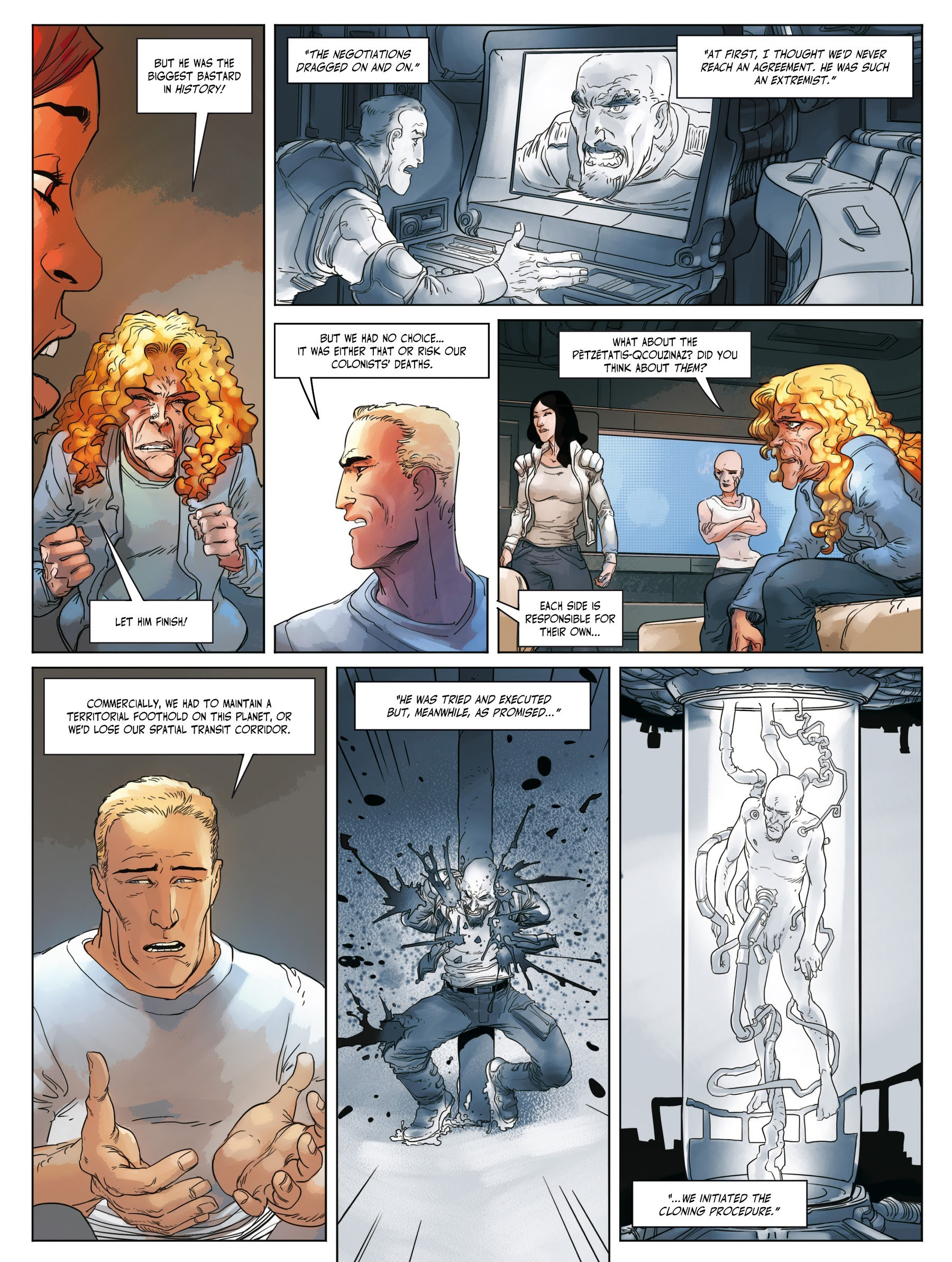 On New Year’s Eve 2999, a peacekeeping troop ship is violently attacked. Out of 3,000 soldiers aboard, only six survive, the remnants of an all-female commando team. Battling deadly adversity, they manage to land on the planet they had departed 16 years earlier, after brokering a careful truce between the human colony and the native alien population, only to discover it now fractured by hostile indigenous freedom fighters and the human warring faction. Meanwhile, the shadow of rogue Captain Nirta Omirli — who rallied the colonists to his cause — still looms large over the planet, despite having being executed 24 years previously…