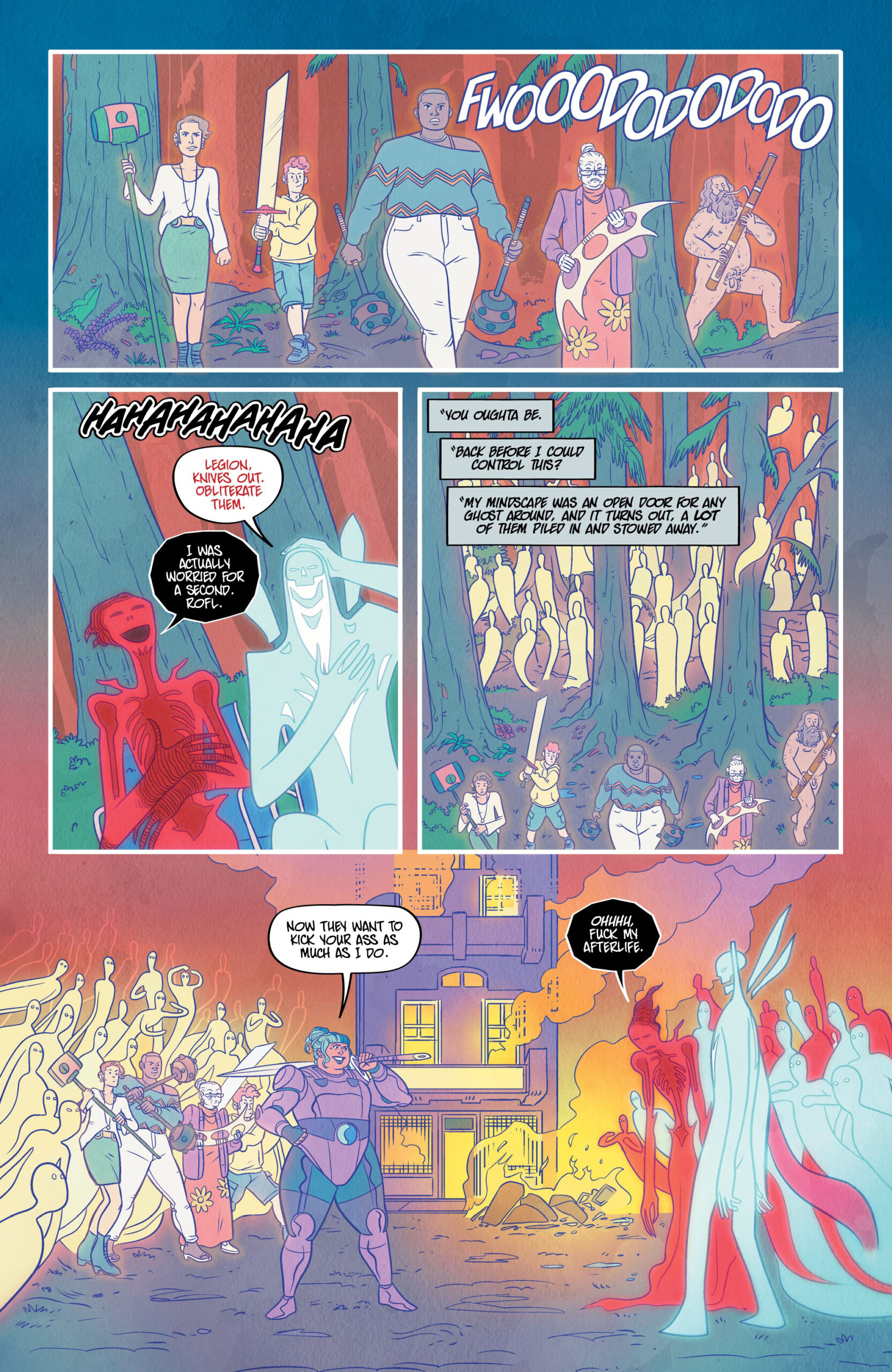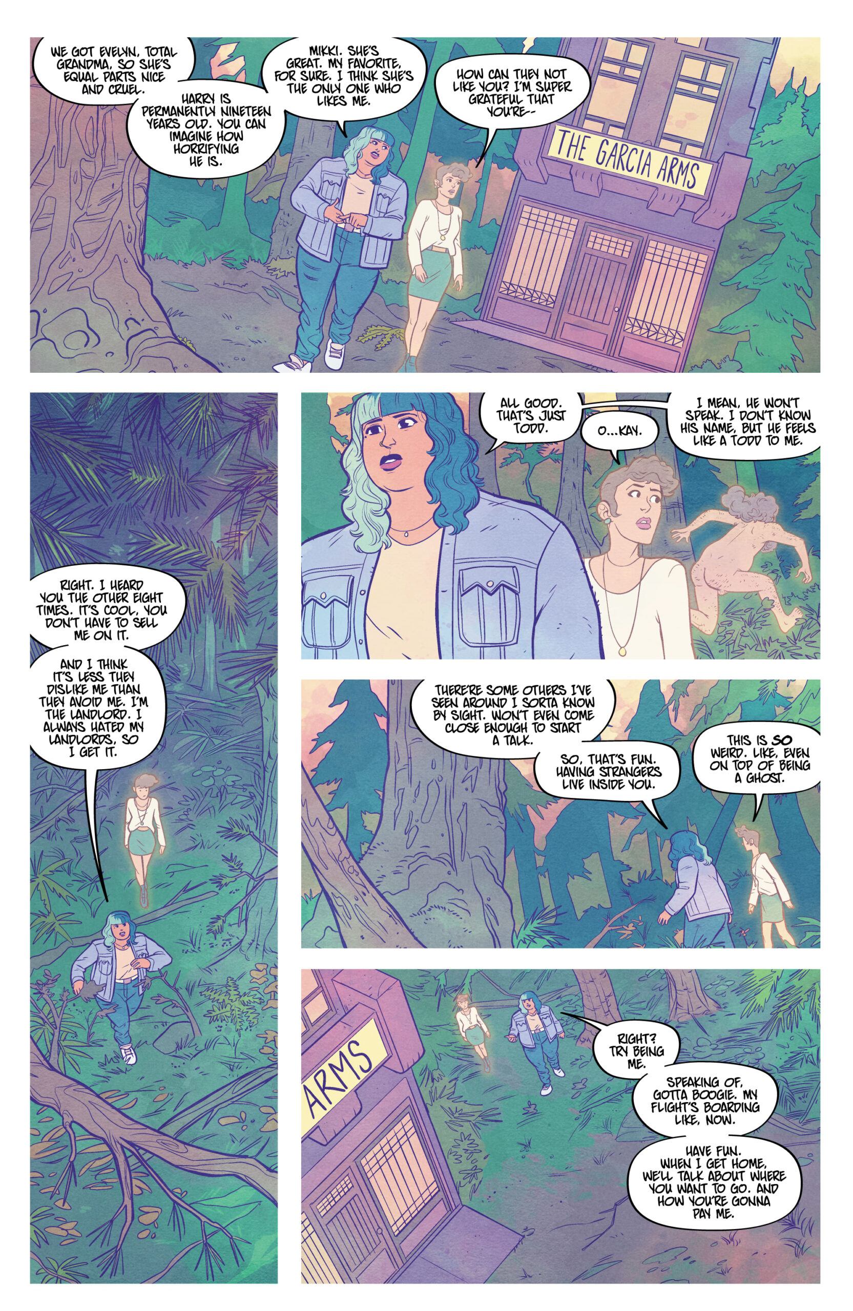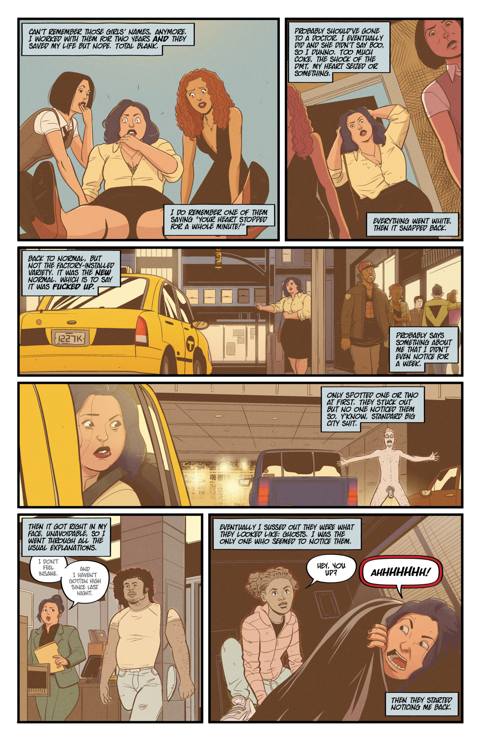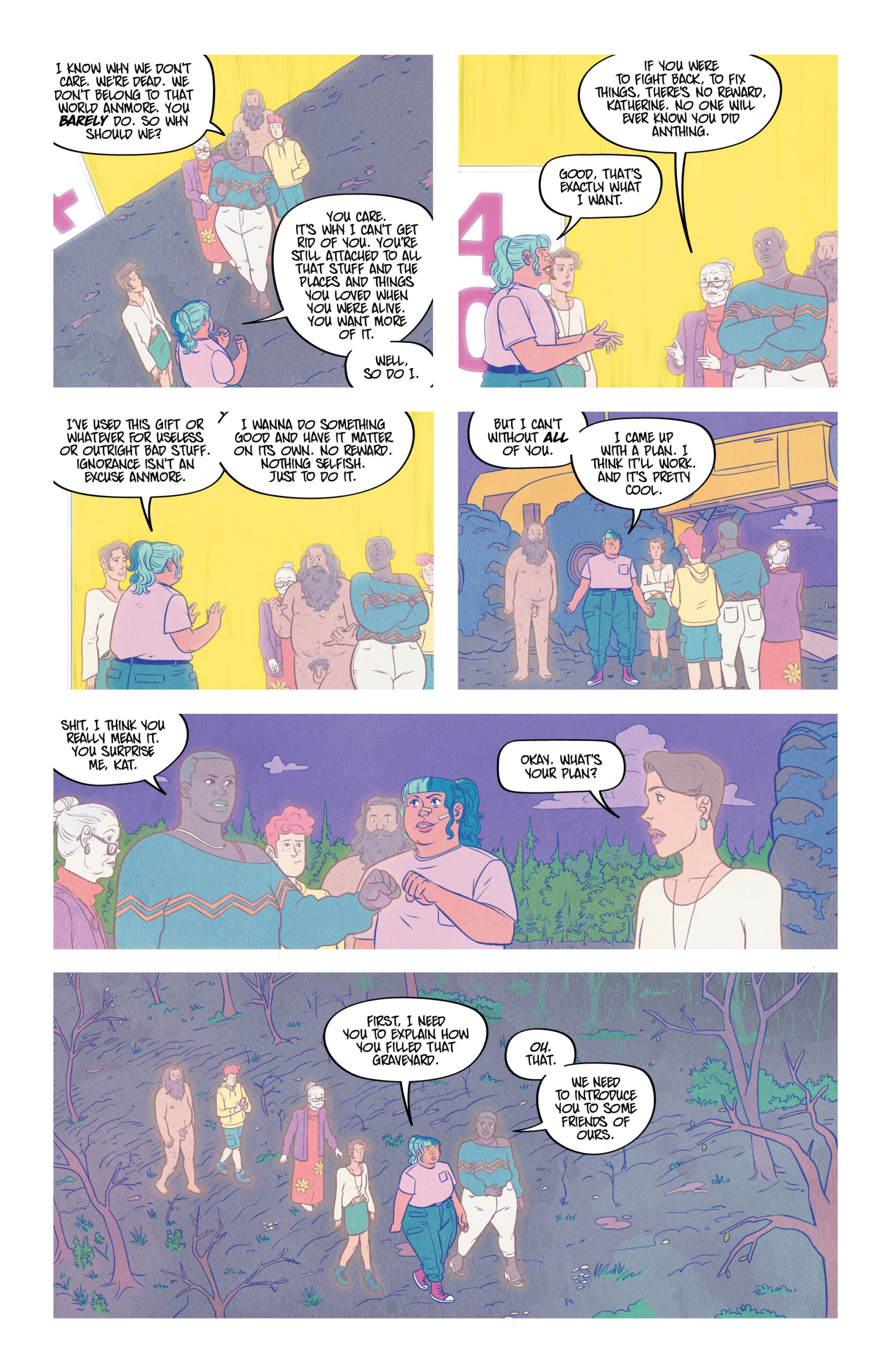 Sheโs stoned. Sheโs selfish. Sheโs all that stands between us and the end of the world. Where do you go when you die? Kat, a stoner with a flexible moral code, can answer that, and the answer is: not very far. Unfortunately for Katโs peace of mind, a near-death experience has left her with the ability to see and hear ghosts, as well as take them into her โmindscapeโ so she can bring them to locations of their choosing, essentially playing transporter to the deceased. But when Kat discovers sheโs the key to a demonic plan to screw up the whole world, she is forced to take an active role in the battle between good and evil. And sheโs not thrilled about it. Christopher Sebela (Injustice: Ground Zero, Crowded), Kendall Goode (The Doorman), and Gab Contreras (Witchblood) team up for a supernatural, stoner action-comedy that puts the โbooโ in booze cruise.