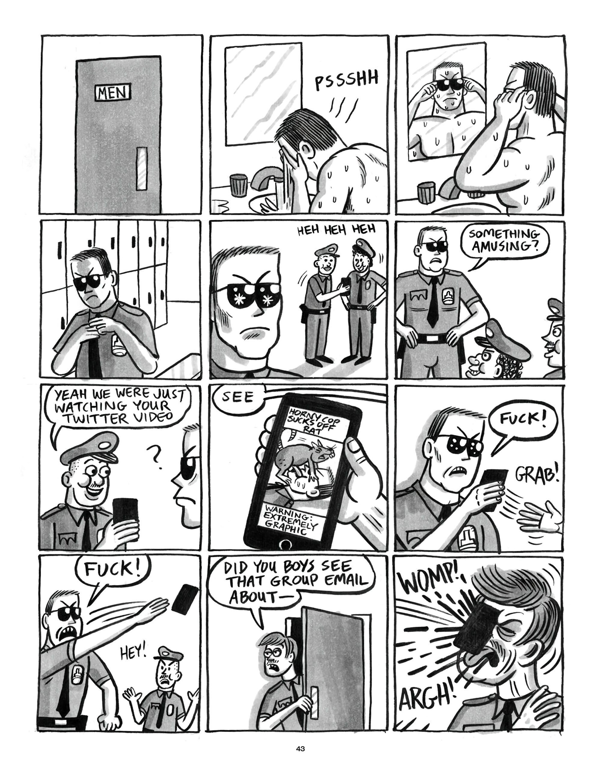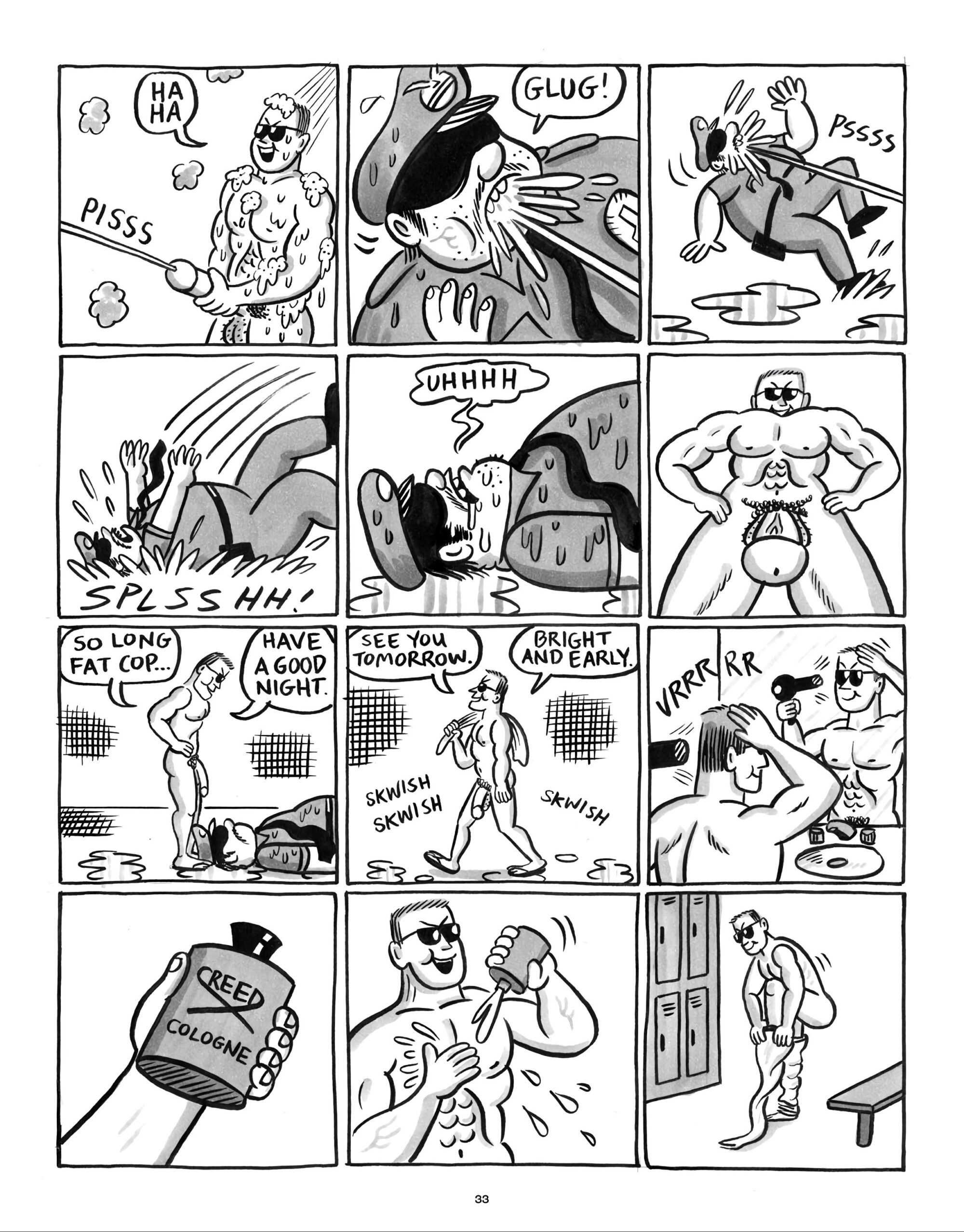 This book actually has a lot more nudity and sex, but we don’t have time for non-gay (or at least homoerotic) panels. Including the last two pages that I left in because, well, who doesn’t want to see cops being degraded?