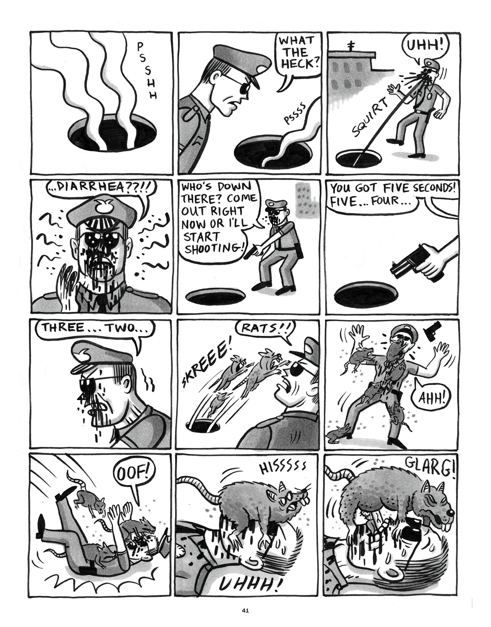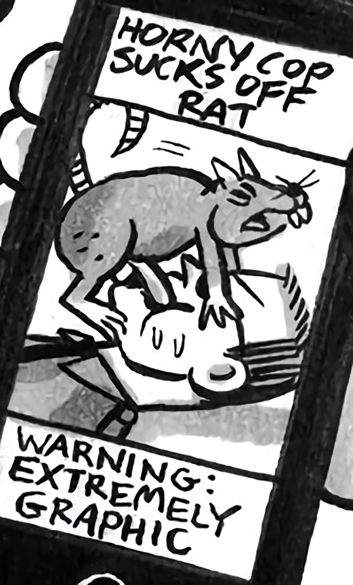 Upholding crime and corruption, one fast food joint at a time. FATCOP never passes up a possible grift, a chance to use excessive force, or a pit stop at any chain restaurant he passes. He chafes when forced to take a new partner, Pete Rick, to keep him on the up and up. Even when he lucks into a heroic deed, he manages to do so repulsively. But when FATCOP uncovers a child slave ring operating out of the local Trader Joe’s, he may have met his match on the reprehensibility scale. If he’s not careful, it might be a transformative experience that causes him to reconsider his role as a loving partner and father. Well, up to a point, anyway — sometimes a fat cop is just a FATCOP. Johnny Ryan returns to his lowbrow humor roots following his cult classic and violent fantasy series, Prison Pit. Ping-ponging his antihero through an ever-escalating and cascading series of violent, scatological, and wildly imaginative absurdities (most but not all of FATCOP’s own making), Ryan’s brilliance as a visual and verbal gag writer shines on every page of this master class in physical humor and comics storytelling. FatCop is as hilarious as it is profane, and a welcome return to long-form comics by the cartoonist and animation veteran Johnny Ryan.